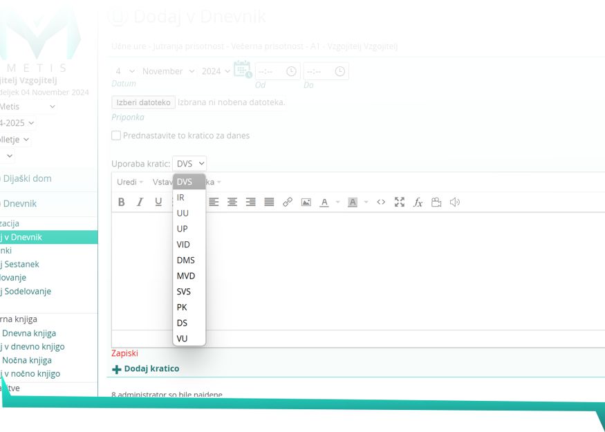 vpis v dnevnik, kratice, sestanki, sodelovanje, dežurna knjiga, vzgojni ukrepi…
