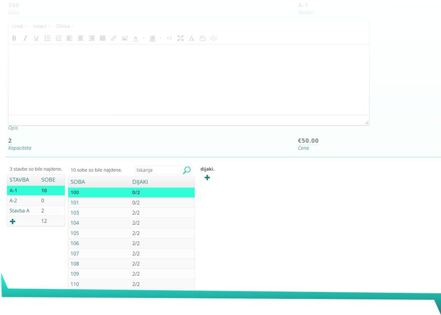 Vodenje sob in bivanja dijakov, cene, razporejanje, konfiguracija tipa sob, inventar…