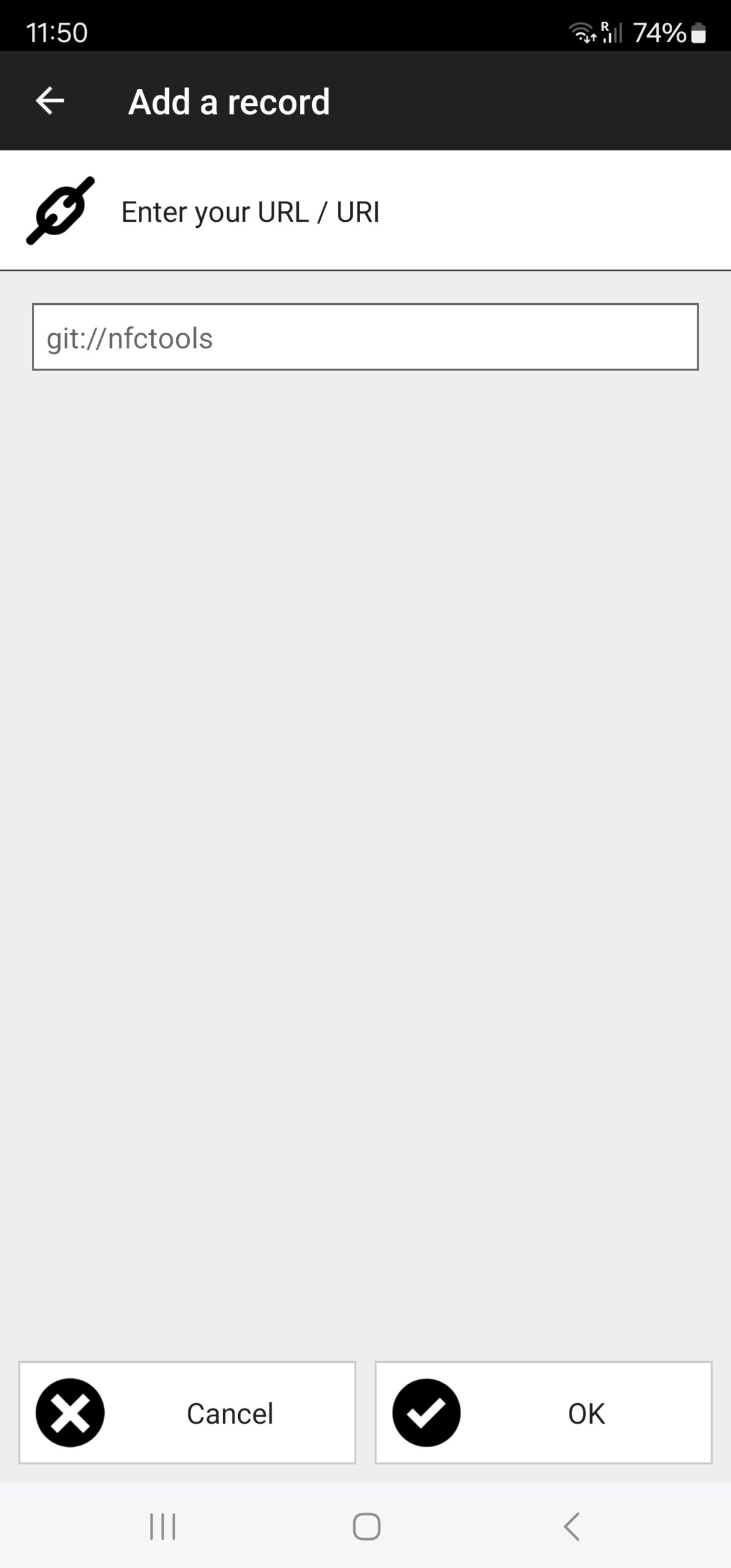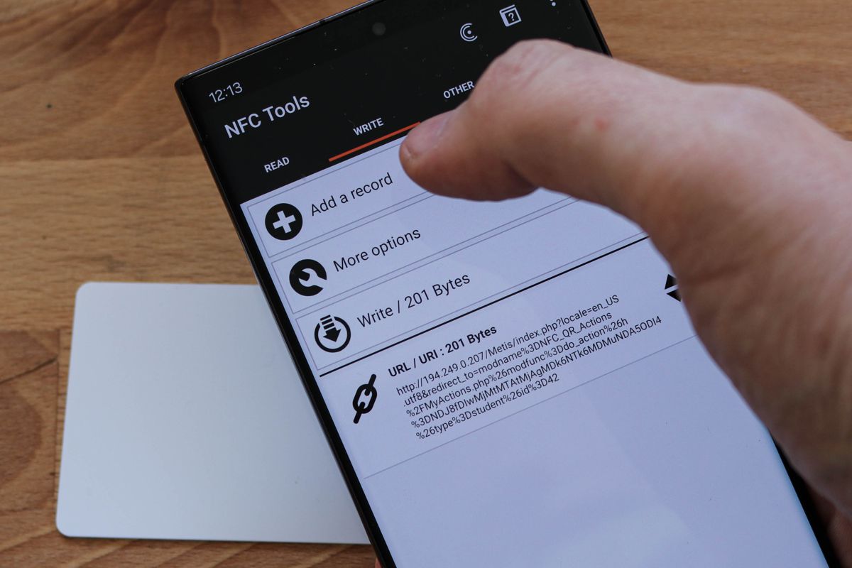 Kliknemo na "Add a record", kot je prikazano na gornji sliki. S tem zaženemo NFC zapis. Telefon bo v pripravljenosti, dokler ne bo zaznal NFC čipa.