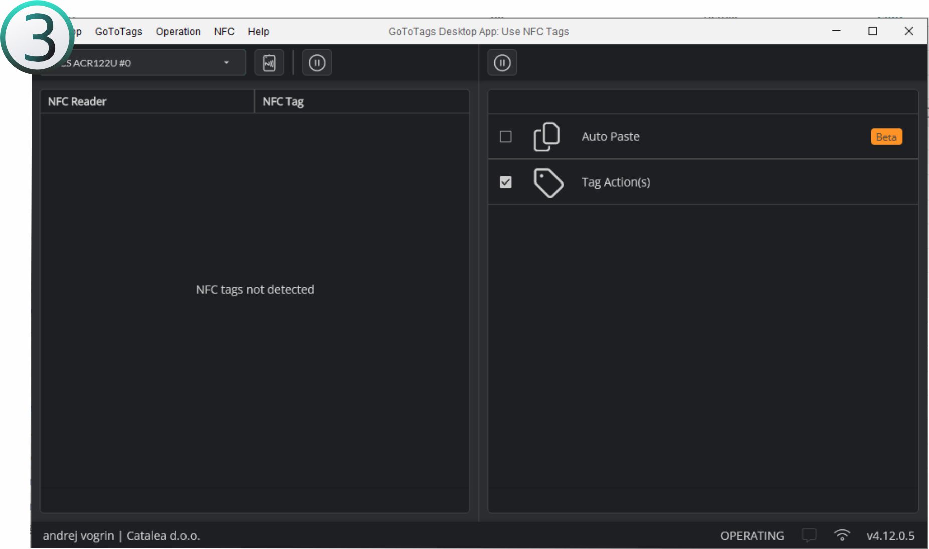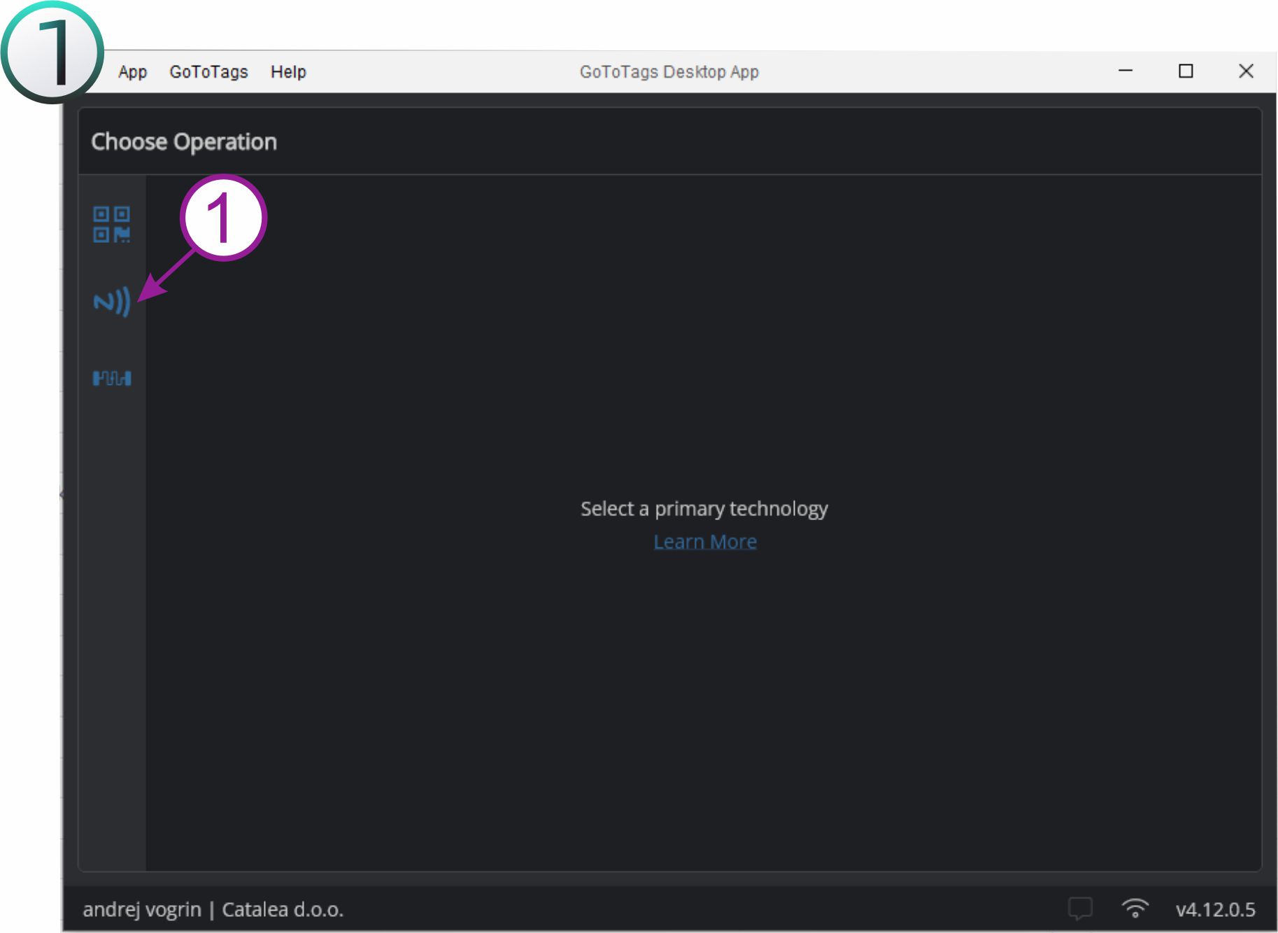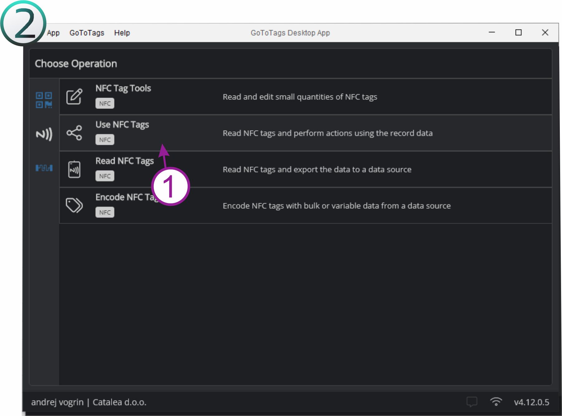 Ko se nam odpre aplikacija GoToTags kliknemo na drugo ikono kot kaže slika.