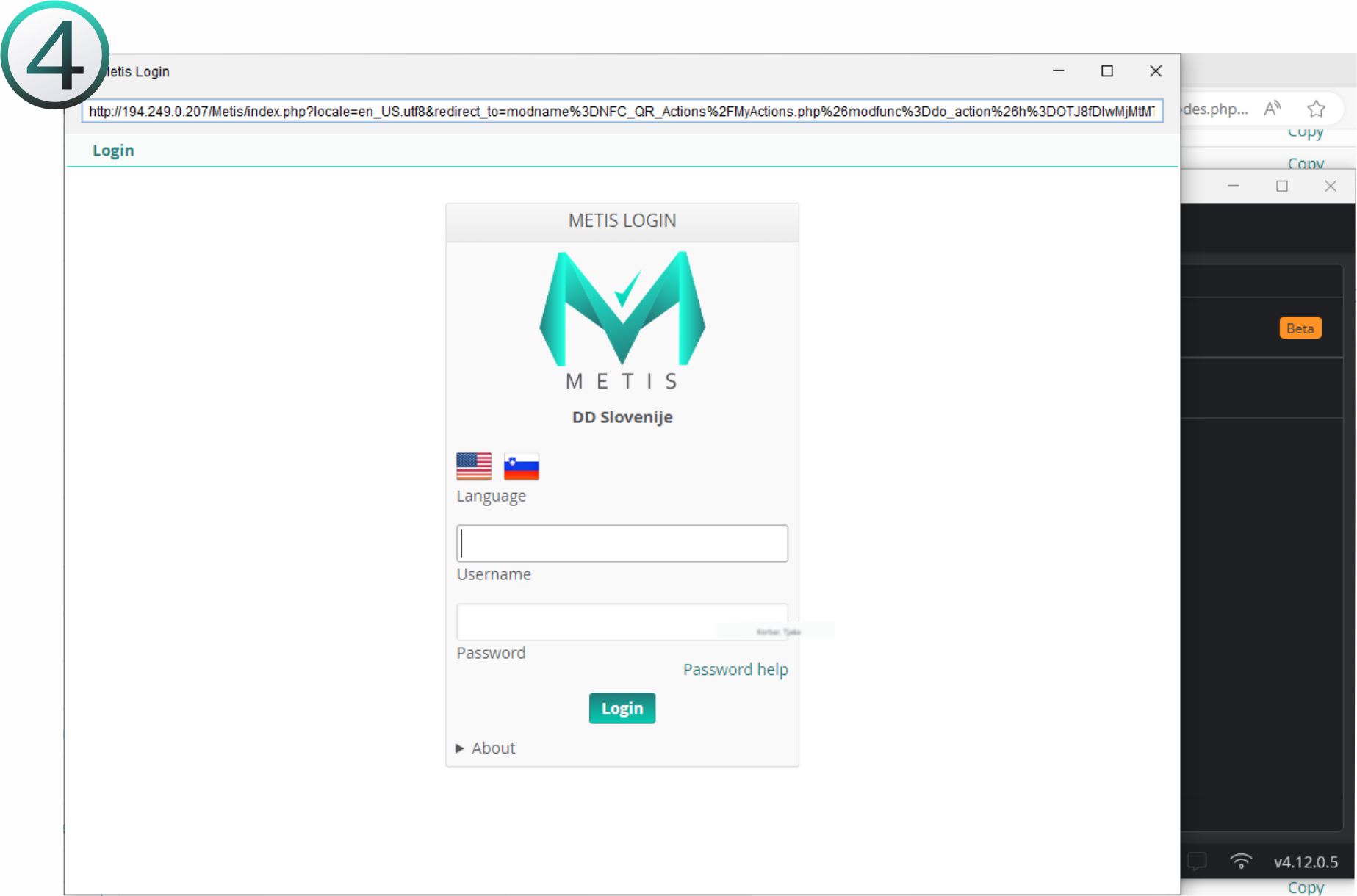 V Aplikaciji GoToTags se vam odpre Metis. Vpišete dostop Receptorja.
