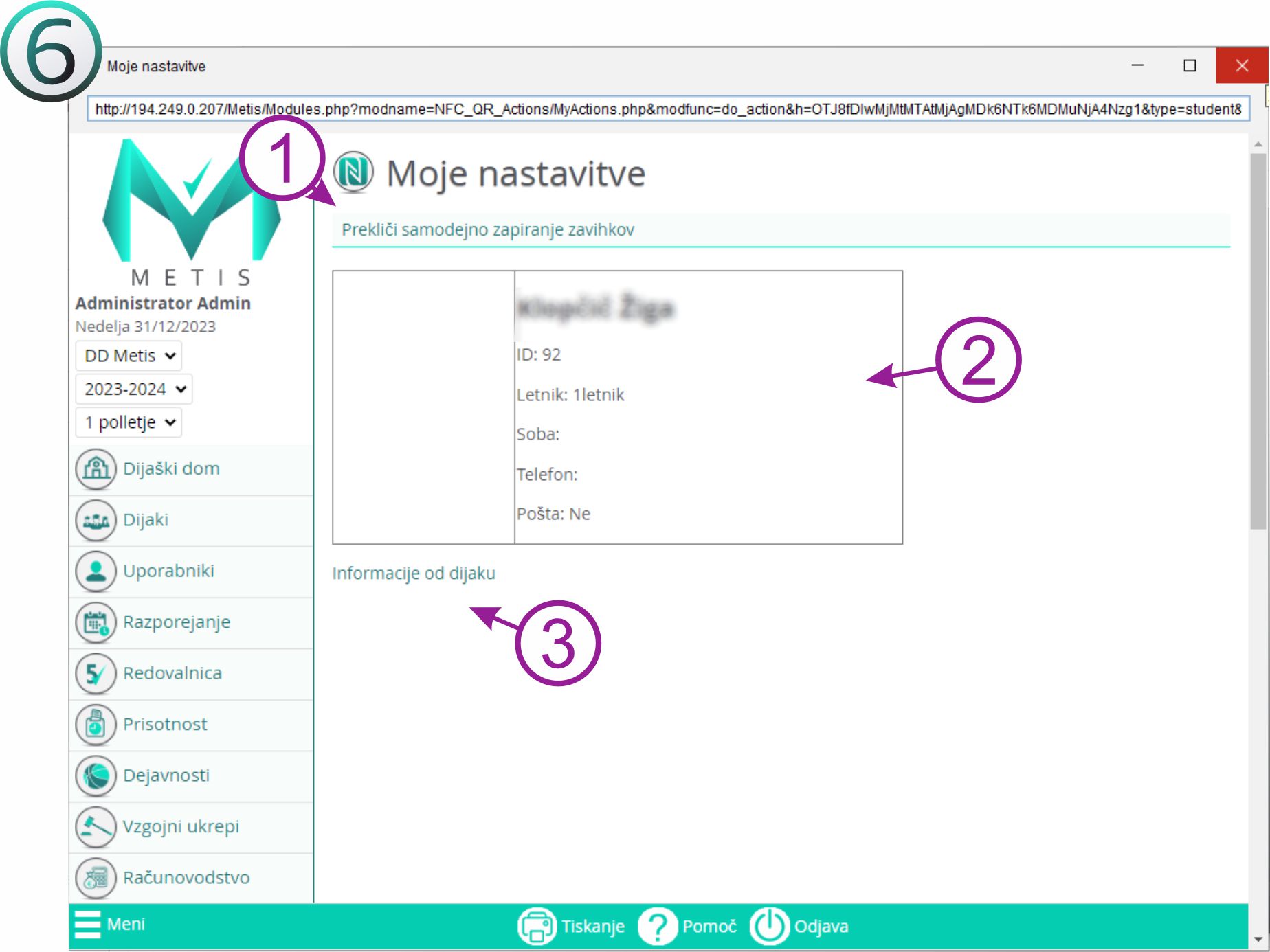3. Imate še opcijo vpogleda v podatke dijaka, katere podatke o dijaku vidite je odvisno od vaše stopnje dovoljenj.