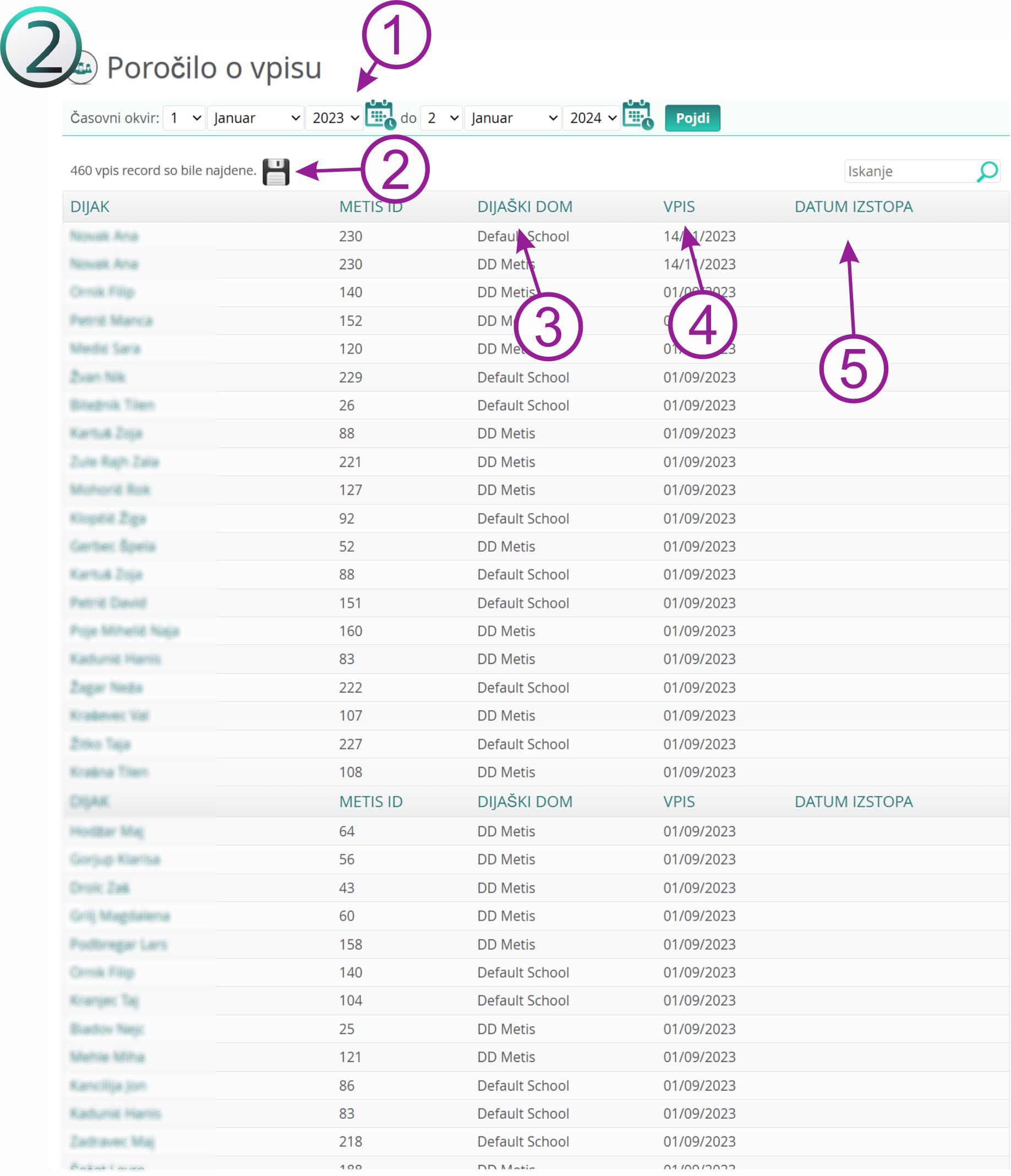 4 Vpis pomeni, kdaj smo dijaka dodali v Metis, služi nam pa lahko tudi kot začetek bivanja v dijaškem domu.